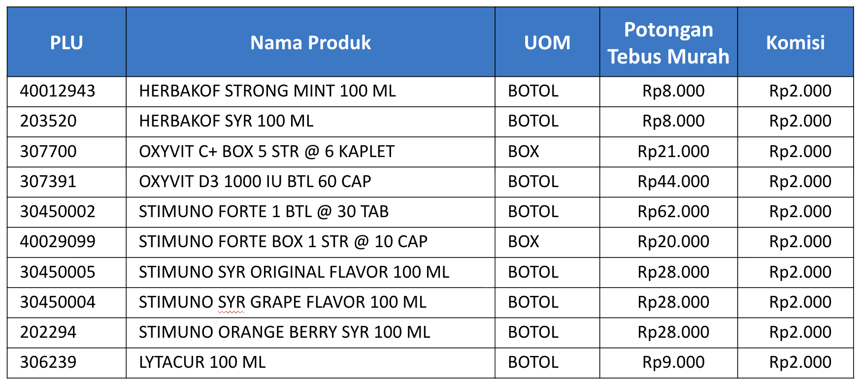 Daftar Produk Program Tebus Murah – CHD