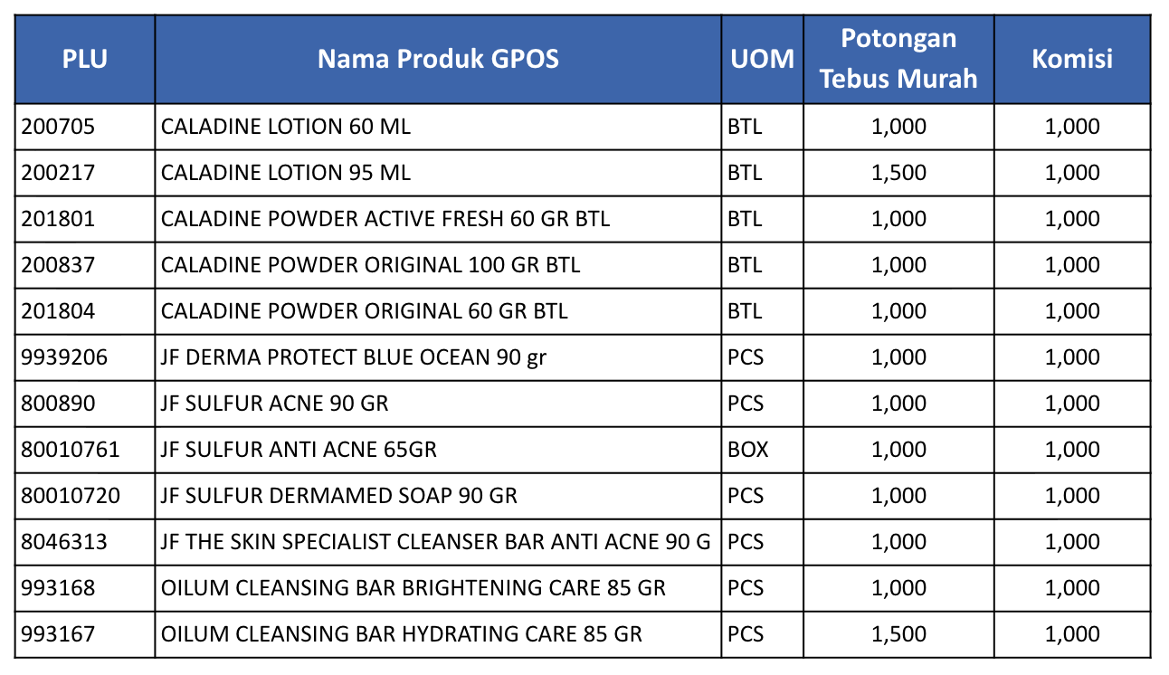 Untuk produk Tebus Murah dari Galenium, yaitu Caladine, JF & Oilum hanya tersedia untuk Apotek tertentu.